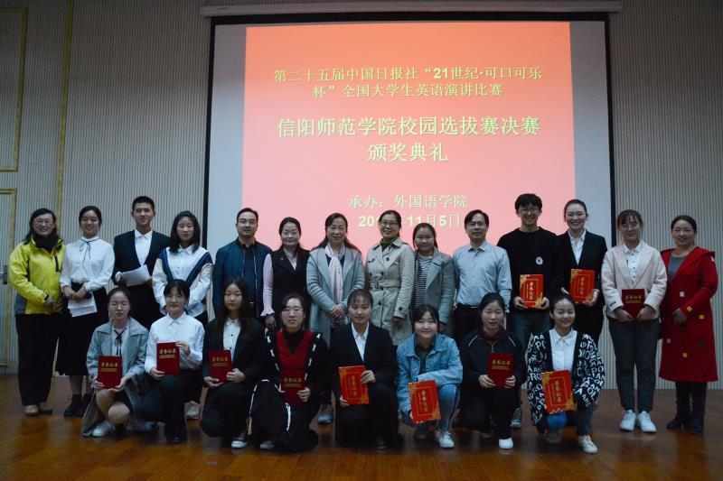 由伟德BV官网承办的第二十五届“21世纪·可口可乐杯”全国老员工英语演讲比赛河南赛区信阳师范公司校园选拔赛于2019年11月5日圆满落幕。伟德BV官网副经理姚光金、教师代表崔淑丽、傅翀、李明晔、余运伟、张瑞、宋冬梅、张倩担任评委,近三百名师生观摩了此次比赛。公司党委副书记柏孟仁和副经理姚光金共同为获奖选手颁奖。