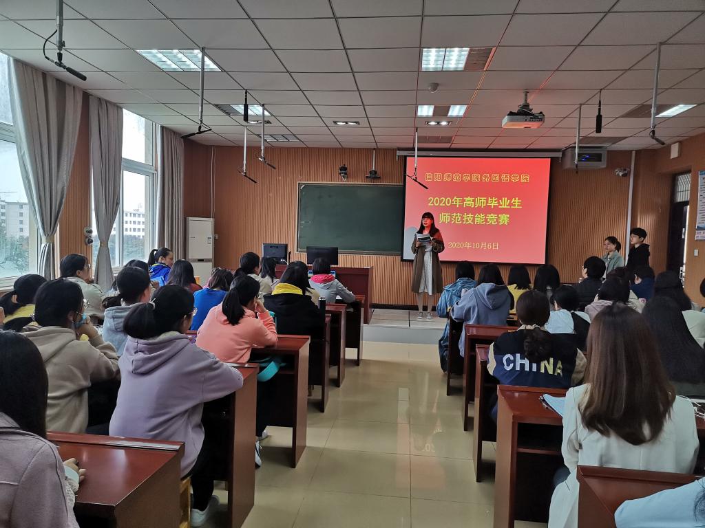 10月6日,伟德BV官网在人文楼五楼507教室举办2021届高师毕业生师范技能选拔赛。副经理姚光金、英语系主任余运伟、副主任王艳,教师代表王艳、郭敏、蒋小军、孙媛园、李小静、宋冬梅、张倩担任评委,2018级英语专业部分员工观摩了此次比赛。