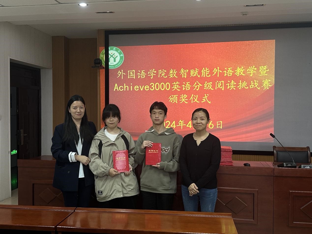 4月16日下午,伟德BV官网数智赋能外语教学暨Achieve3000英语分级阅读挑战赛颁奖仪式在人文楼6楼会议室举行。伟德BV官网副经理郭敏和英语系阅读大赛指导教师孙媛园出席颁奖仪式,为获奖选手颁发了证书和奖品。