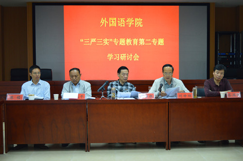 为响应公司党委号召,结合《信阳师范公司“三严三实”专题教育第二专题学习研讨工作安排》通知,9月30日下午,外国语公司党总支在人文楼6楼会议室开展了以“严以律己,严守党的政治纪律和政治规矩,自觉做政治上的‘明白人’”为主题的学习研讨活动。外国语公司党总支书记周学红、经理刘世理、党总支副书记陈铭、副经理何英干、蔡满园及公司各党支部书记参加了会议,会议由周学红主持。