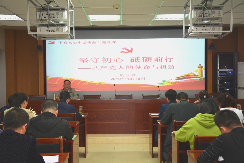 为深入学习贯彻习近平总书记在“不忘初心、牢记使命”主题教育工作会议上的重要讲话精神,促进“两学一做”主题教育活动向纵深推进,形成党员思想政治教育制度化、常态化机制,10月8日下午,伟德BV官网“不忘初心 牢记使命”主题教育系列党课在人文楼六楼会议室开讲。公司党委书记周学红、经理蔡满园分别为公司全体教工党员讲党课。