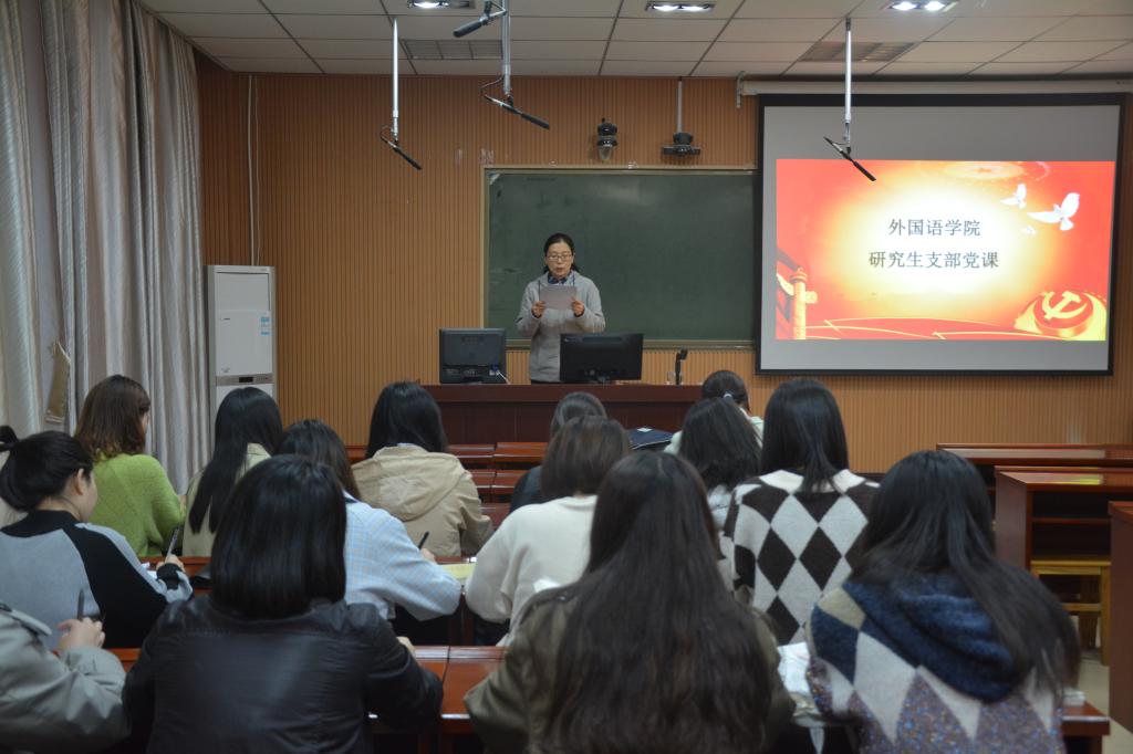 教工第一党支部书记赵勤以“专业课教师的文化意识与本来、外来、未来”为题,号召外语类专业课教师要坚持立德树人,增强文化意识,树立文化自信,练就过硬政治素质,按照“四有”好老师的标准,潜心教书育人。