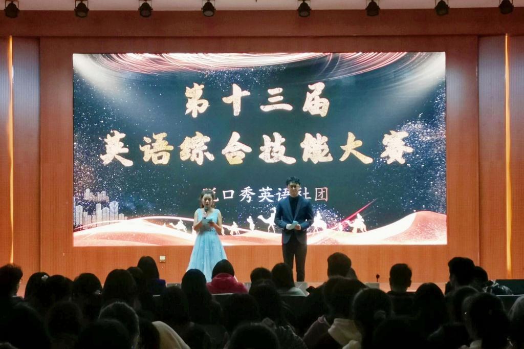 11月20日晚,公司在逸夫楼报告厅举办第十三届英语综合技能大赛。专任教师余运伟、李明晔、杨红、任芳及外教Karun Murugan担任大赛评委,公司团委书记孔宪巍与2020级全体员工一同观看了比赛。