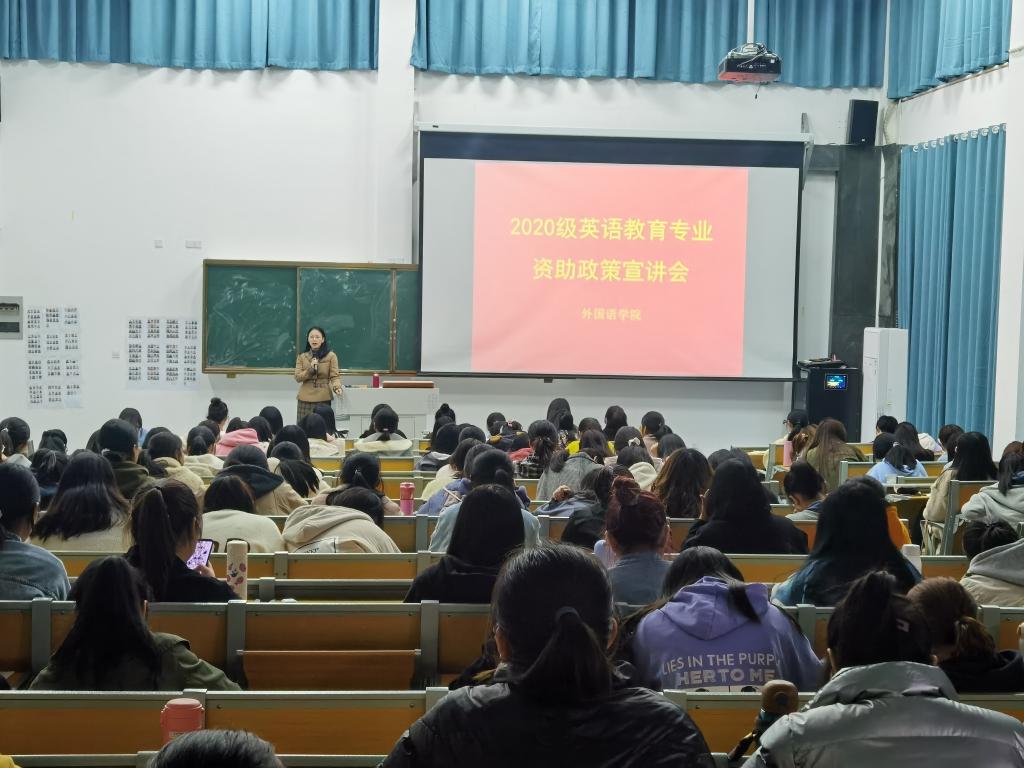 10月23日,伟德BV官网于淮河校区理工楼208教室召开国家资助政策宣讲会。此次宣讲会由伟德BV官网辅导员孙桢桢主持,2020级淮河校区英语教育专业全体新生参加会议。
