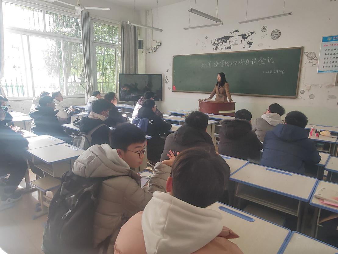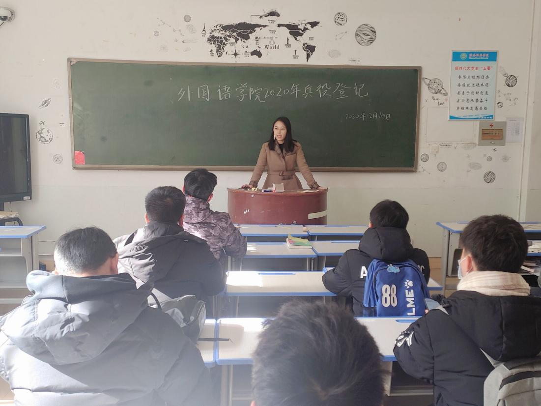 12月15日中午,伟德BV官网于人文楼101教室召开了兵役登记暨征兵宣讲会,武装干事孙桢桢及2020级全体男生参加此次会议。