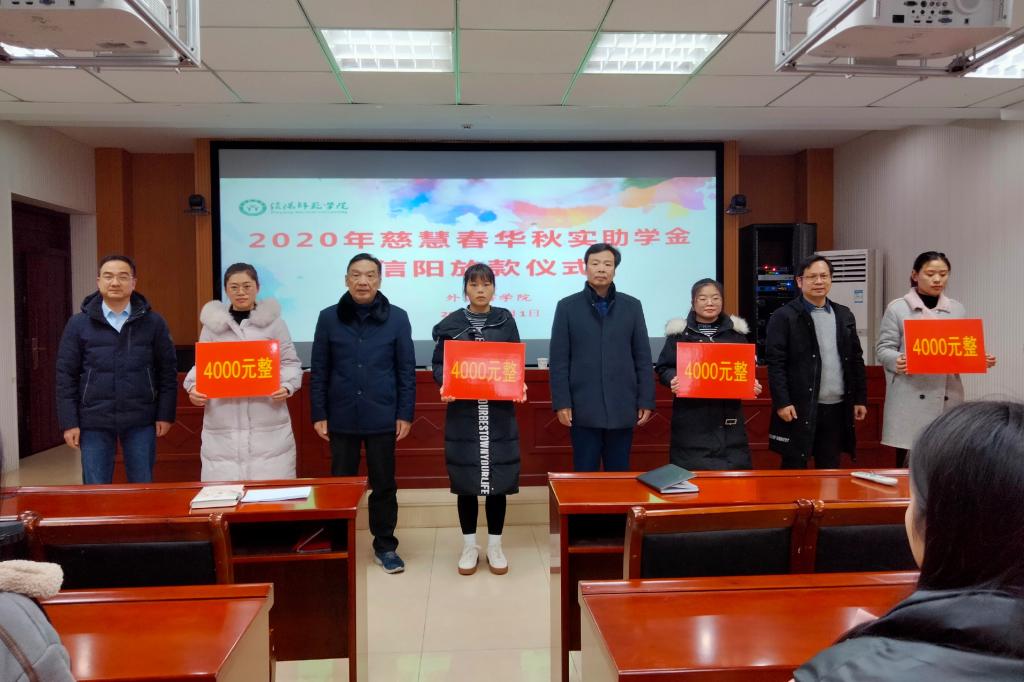 12月1日下午,2020年慈慧春华秋实助学金放款仪式在人文楼六楼会议室隆重举行。外国语公司党委书记周学红,经理蔡满园,党委副书记柏孟仁,副经理姚光金出席仪式,辅导员陈龙、周旋、孙桢桢以及全体受资助员工共同参加仪式,仪式由柏孟仁主持。