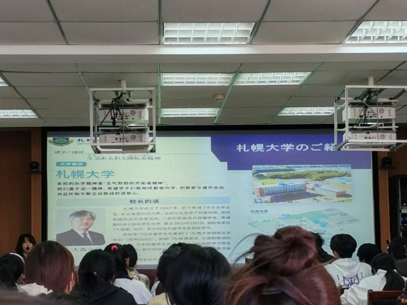 随后,野中科长对札幌大学面向公司的一年交换留学项目和2+2留学项目进行了详细介绍,特别针对同学们普遍关心的入学申请条件和专业选择相关事宜进行了深入解读。在互动交流环节,野中科长还耐心解答了同学们的提问,消除了同学们对赴日职工活及专业发展前景等方面的疑问。