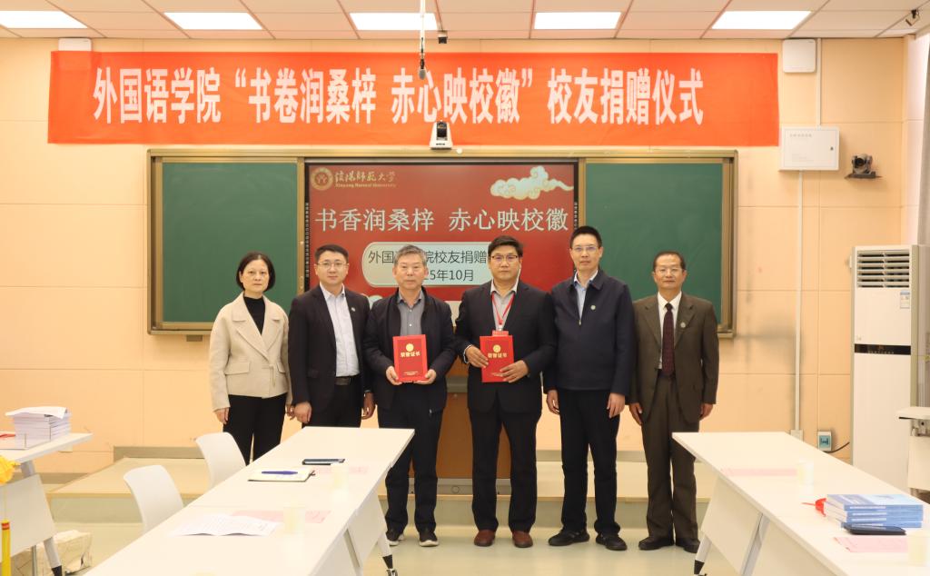 同日下午,公司于人文楼5-04举办“书卷润桑梓,赤心映校徽”员工实物捐赠仪式。校资产管理处副处长周刚、校图书馆副馆长汪明霞及公司领导出席。87级员工赵开中、89级员工刘向阳分别捐赠锦旗及个人著作,用行动彰显对母校的深情,以书香传递赤子情怀,为公司发展注入温暖力量。
