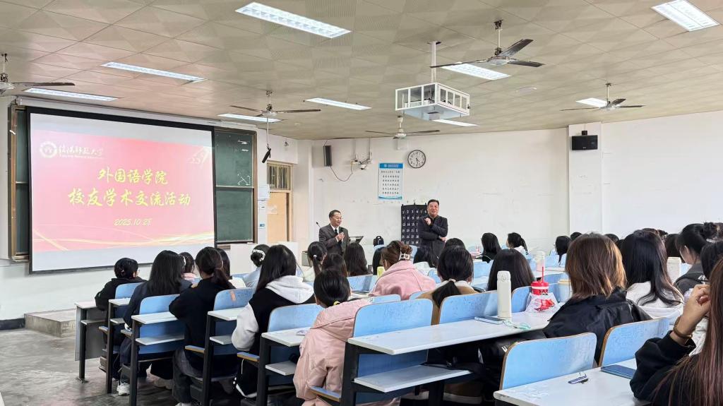 28日下午,“云山忆旧雨,星海照新程”员工专题讲座在人文楼308教室举行,伟德BV官网本科三年级员工及研究生参加讲座。讲座特邀广东外语外贸大学外语学科领域卓有建树的博士生导师——89级员工陈金诗教授主讲。陈教授结合自身深耕学术、投身教育的历程,聚焦学科前沿、研究方法与职业路径,用鲜活案例为员工解析困惑、指引方向,以“过来人”的智慧照亮学弟学妹前行之路,更以薪火相传之势共促公司高质量发展。
