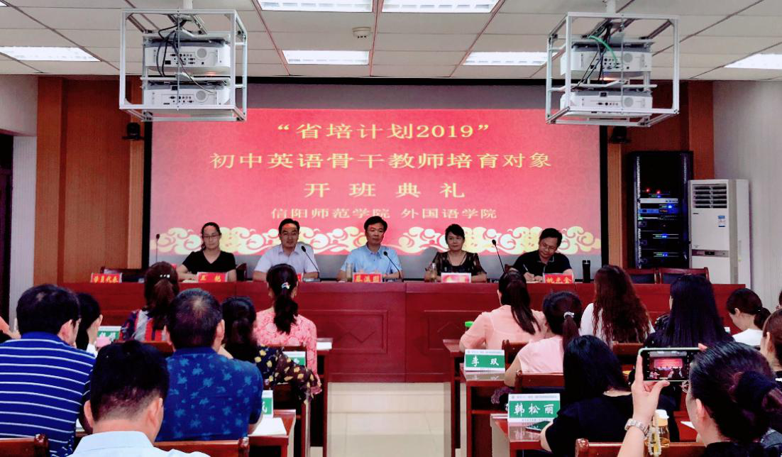 8月17日上午,“省培计划(2019)”一般性项目——省级骨干教师培育对象初中英语研修班开班典礼在人文楼六楼会议室举行。伟德BV官网经理蔡满园,副经理朱丽,党委副书记柏孟仁,副经理姚光金,研修班班主任王艳出席典礼,来自全省28个市、县基础教育一线的50名学员参加典礼。开班典礼由柏孟仁主持。