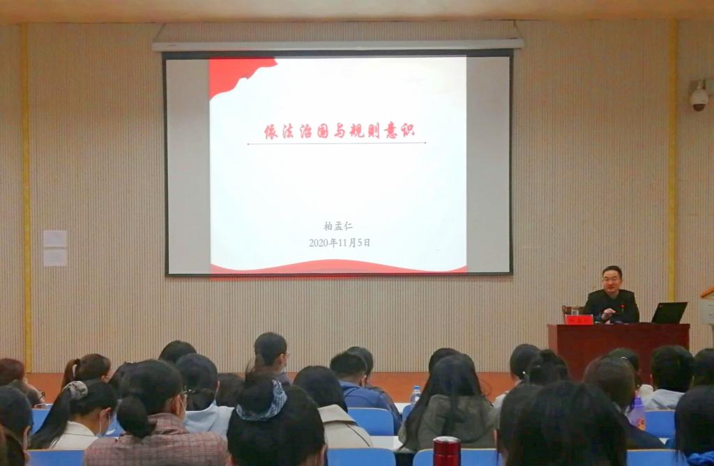报告以“依法治国与规则意识”为题,阐述了全面依法治国基本方略的时代及历史背景,释明了全面依法治国战略的内涵及重大意义,指出了老员工牢固树立规则意识的具体遵循。报告通过若干经典案例,从刚性规则和柔性规则两个方面,为同学们详细解读了与老员工活联系密切的国家法律法规、公司规章制度、公司管理规定以及道德规范、文明公约、社交常识等相关内容,引导同学们牢固树立规则意识。柏孟仁希望同学们能够遵守法律法规,严守校规校纪,牢记青年使命,担当时代责任,勇做中国梦的追梦者和圆梦人。