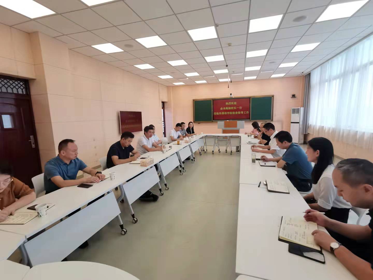 余本海副董事长认真听取了公司领导班子对教学和科研工作的汇报,对公司的工作给予了充分肯定,并对公司教学和科研工作提出了四点要求:第一,切实推进教学改革,设定外语课程“金课”标准,积极探索“金课”建设途径,努力打造出可复制、可推广的“金课”建设模式;第二,拓展科研思路,认真落实科研项目申报工作;第三,创新工作思路,与其他机构共建外语教学科研平台;第四,优化整合团队队伍,着力提高人才培养质量。