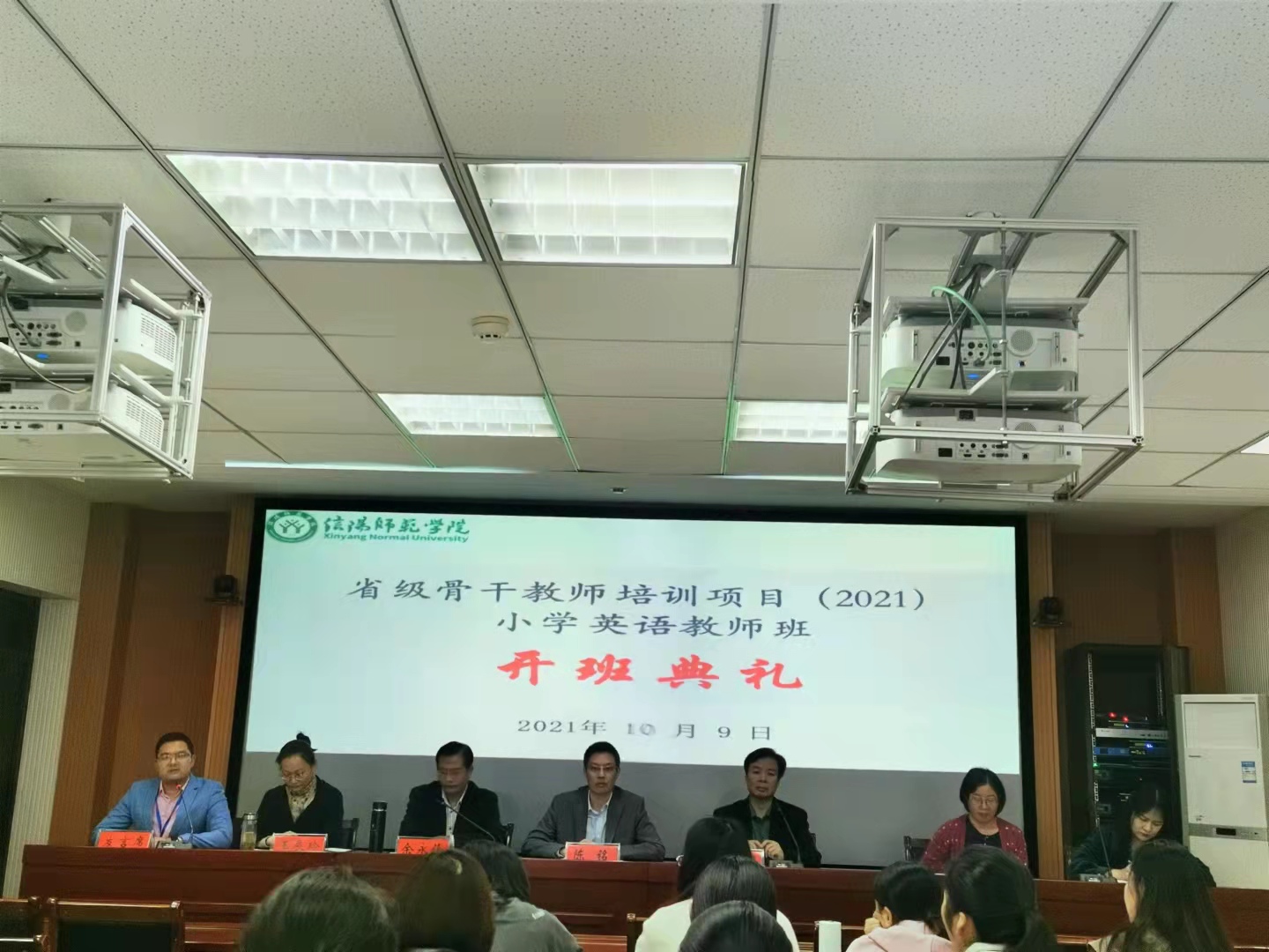 10月9日上午,“省培计划(2021)”小学英语骨干教师提升培训班开班典礼在人文楼607举行。外国语公司党委书记陈铭,经理蔡满园,副经理余永锋及研修班班主余运伟、王辰玲、刘怡露出席典礼。来自信阳、南阳、济源等3个地市10个县区基础教育一线的50余名学员参加典礼。开班典礼由余永锋主持。