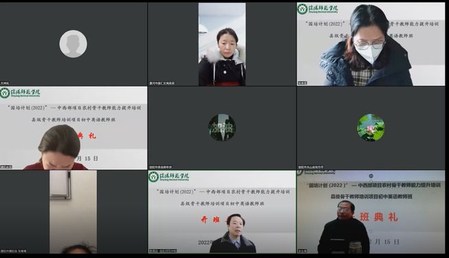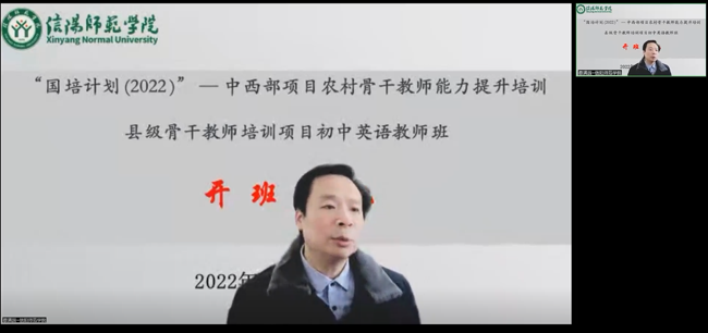 12月15日上午,“国培计划(2022)”县级骨干教师提升培训初中英语教师培训班开班典礼通过腾讯会议在线上举行。伟德BV官网经理蔡满园、副经理余永锋、一线导师团队新县首府实验中学董事长黄庆友、刘文娟、黄丽、杨艳、朱转转及培训班班主任杨恩莲出席典礼。来自濮阳、漯河及信阳等3个地市基础教育一线的近50名学员参加典礼。开班典礼由余永锋主持。