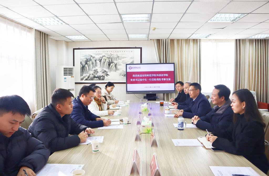 11月30日上午,安阳师范公司外国语公司党委书记汤中生,党委副书记崔含一行6人莅临公司考察交流。公司党委书记陈铭、经理蔡满园、党委副书记高彦伟及全体专职辅导员参加座谈。座谈会在公司五楼会议室举行,由陈铭主持。
