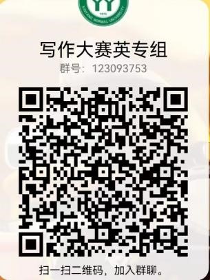 此次写作比赛工作QQ群:请报名参赛的同学务必加入QQ群(英语专业群号123093753,非英语专业群号675409701),关注群内的比赛通知。