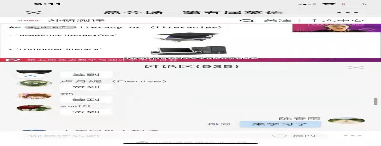 “十四五”时期,我国教育进入高质量发展阶段。为进一步促进员工核心素养发展,发挥不同评价机制和方式在课堂教学中的作用,推动构建“教-学-评”一体化的教育生态,实现多元评价、有效教学、全人发展,北京师范大学外国语言文学公司和外语教学与研究出版社将于2022年4月15—16日举办“第五届英语教学与测评学术研讨会”。公外语教研室部分教师积极参加第五届英语教学与测评学术研讨会,提高自己学术理论水平。本次会议的主要议题考试评价改革、核心素养测评的理论与实践、基于核心素养的课堂活动设计与评价、诊断性测评与课堂教学的融合、中国英语能力等级量表的应用、在线教学与测评、自主学习能力培养和测评、评价工具的建构及其应用、教师测评素养发展;会议主要内容有4场主旨发言、7场专题发言、6个平行分会场、12节课例展评、2组案例论坛、7场特别展示。