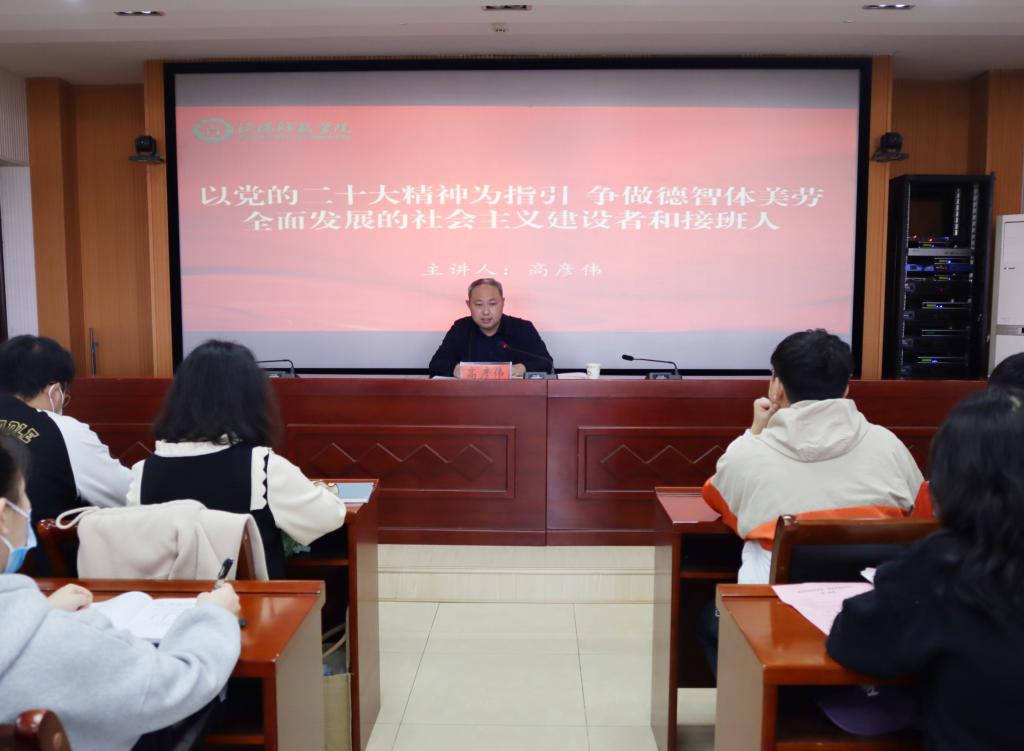 为深入学习宣传贯彻党的二十大精神,提高员工干部能力素质水平,3月7日下午,公司党委副书记高彦伟在人文楼6-07会议室作了题为“以党的二十大精神为指引,争做德智体美劳全面发展的社会主义建设者和接班人”的专题辅导报告,全体员工干部参加了报告会。会议由团委书记周旋主持。
