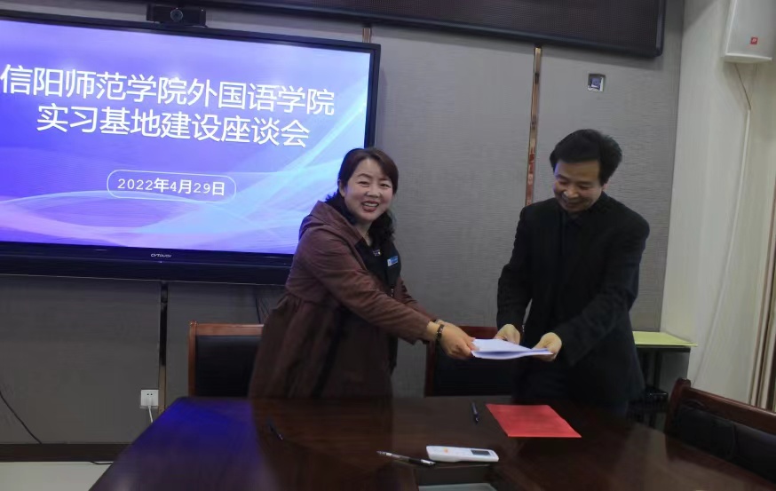 为进一步推动师范院校和地方基础教育的合作共建,更好地提升外语专业师范生实习实践实效。2022年4月29日下午,外国语公司党委书记陈铭、经理蔡满园率队赴平桥外国语小学开展实习基地建设座谈会,平桥区教体局局长刘浩、工会主席杨志辉、平桥外国语小学董事长陆红、副董事长梅娟、平桥外国语小学英语教学组部分教师代表共同参加了此次座谈。