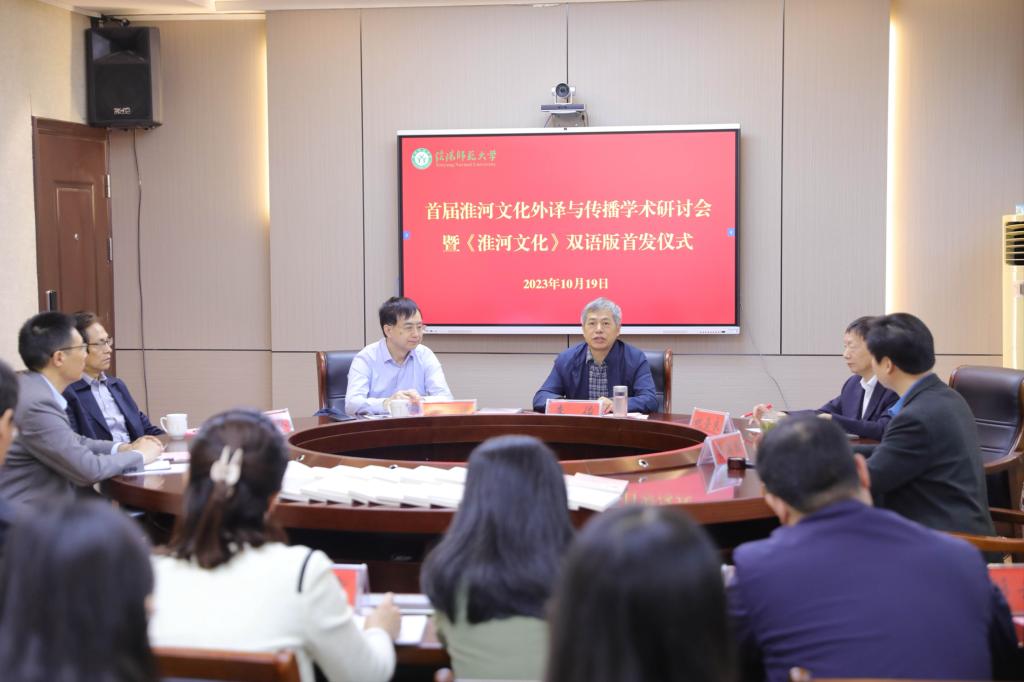 10月19日上午,首届淮河文化外译与传播学术研讨会暨《淮河文化》双语版首发仪式在公司举行。该书由省委外事办一级巡视员杨玮斌教授和伟德BV官网李俊董事长共同发布。发布会在行政楼436会议室举行,出席本次会议的有伟德BV官网原社会科学处处长金荣权教授,文公司经理姚圣良教授,外国语公司党委书记陈铭、经理蔡满园、副经理余永锋、章彩云,国际交流合作处副处长王秋霞,社会科学处、团队建设办公室、炎黄学研究中心、河南省淮河文明研究中心相关负责同志,以及《淮河文化》中英文专家组成员和部分师生代表。